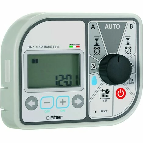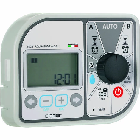 Il gère jusqu’à 8 lignes d’irrigation, 2 cycles indépendants, jusqu’à 4 démarrages quotidiens par cycle, sélection des jours d’arrosage, fonction Rain Stop, 4 boutons et un sélecteur à molette, transformateur inclus. Condensateur Super Capacity, qui accumule de l’énergie lors d’une utilisation normale et la libère en cas de panne de courant.