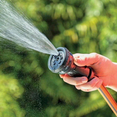 Kit complet avec: attache pour robinet 3/4 , raccords automatiques, bec multifonction pour choisir entre 8 jets différents (+2 positions OFF).