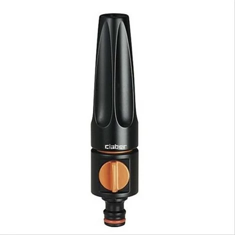 Lance d’arrosage »Plus ». Double réglage du débit et du jet : concentré nébulisant ou pluie fine. Capuchon de réglage avec arrêt antidévissage.